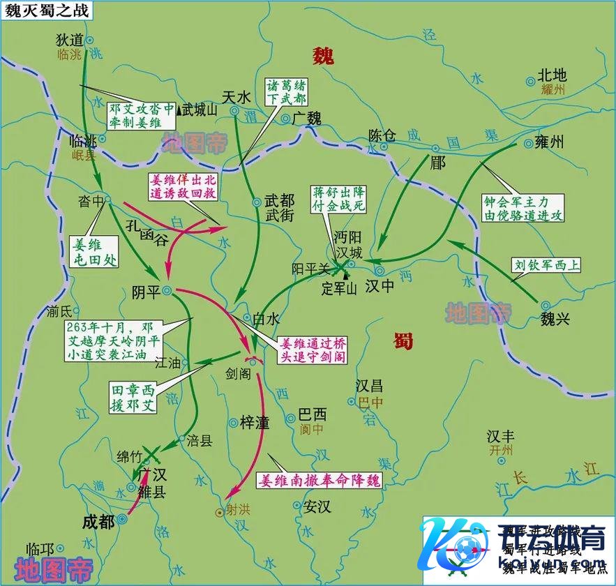263年(曹魏元帝景元四年;蜀汉怀帝景耀六年或炎兴元年)八月,司马昭兵分三路,征西将军邓艾、中护军诸葛绪、镇西将军锺会南下,蜀汉卫将军诸葛瞻(诸葛亮宗子)就义,刘禅率文武百官出降,蜀汉衰落。