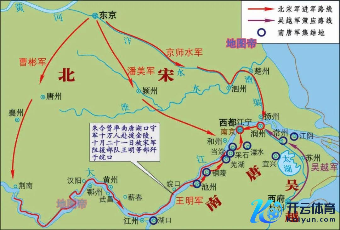宋朝确立后,南唐保管近况,用宋朝年号。975年,濒临北宋大将曹彬,南唐后主李煜战胜,南唐一火。
