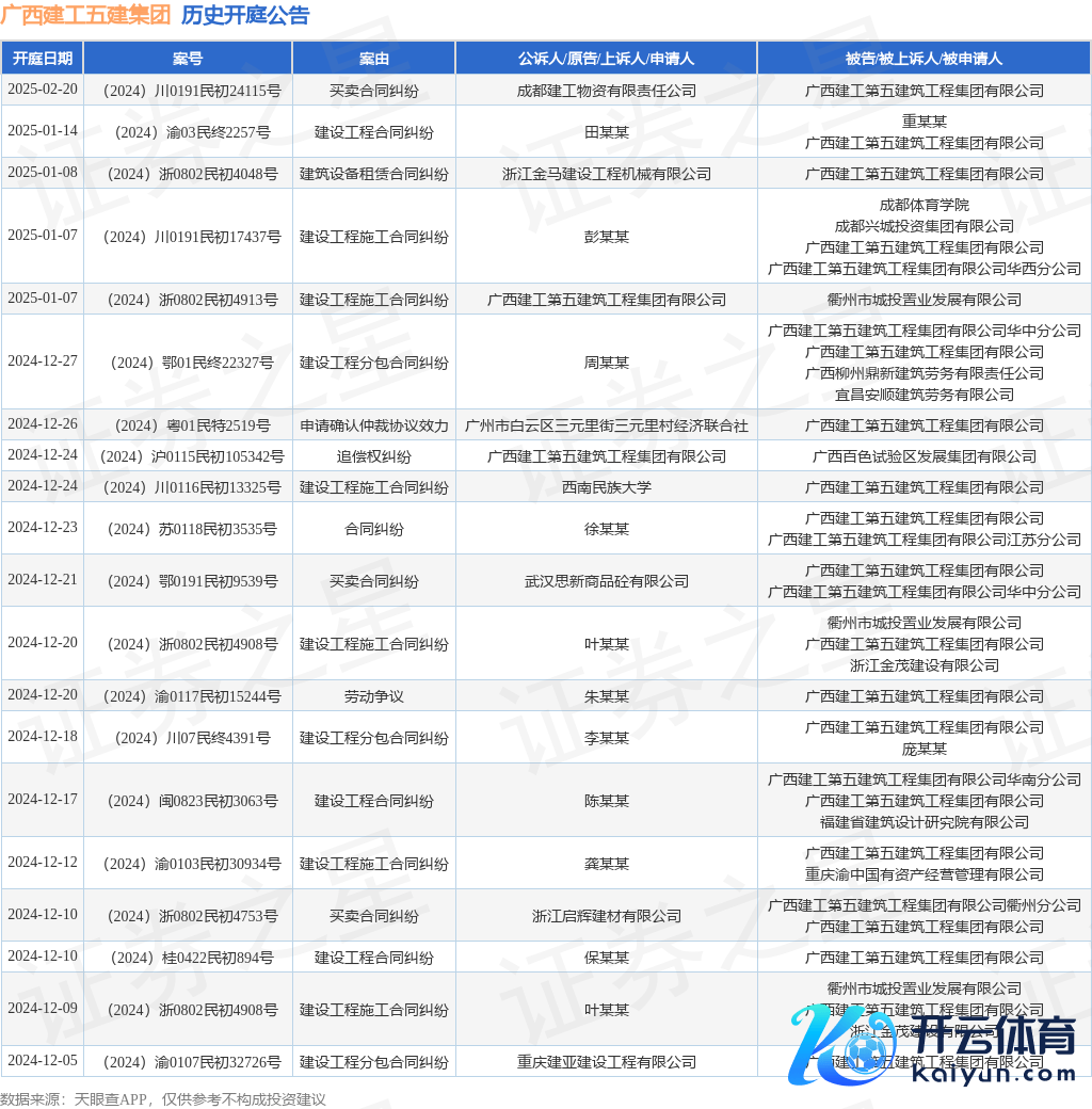 本站音信,凭证天眼查APP理解,近日公布了一则广西建工第五建筑工程集团有限公司行为原告/上诉东说念主的开庭公告,详备本色如下: