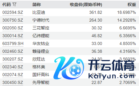 更遍及的是,“新能电板”指数“重仓”了比亚迪和宁德期间,二者总共权重超32%,前10大重仓股占比达到67.73%。
