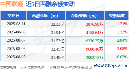 本站音信,8月11日,中国联通(600050)融资买入2.2亿元欧洲杯体育,融资偿还1.81亿元,融资净买入3893.6万元,融资余额32.3亿元,近20个交游日中有11个交游日出现融资净买入。