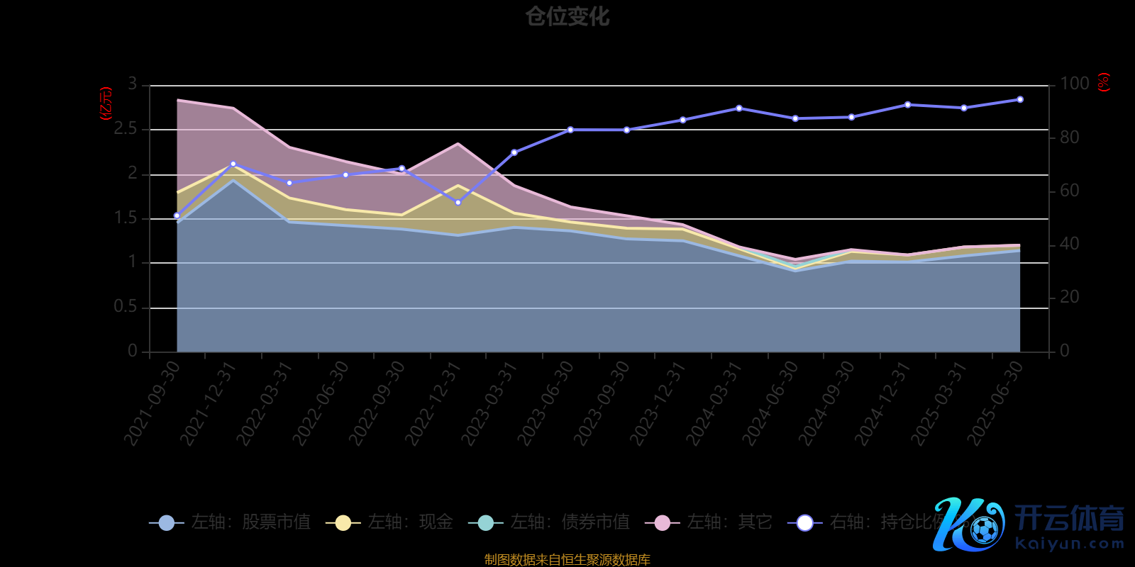 据按时施展注解数据统计,近三年平均股票仓位为83.19%,同类平均为83.27%。2025年上半年末基金达到94.62%的最高仓位,2021年三季度末最低,为51.07%。